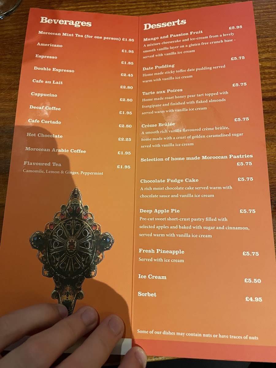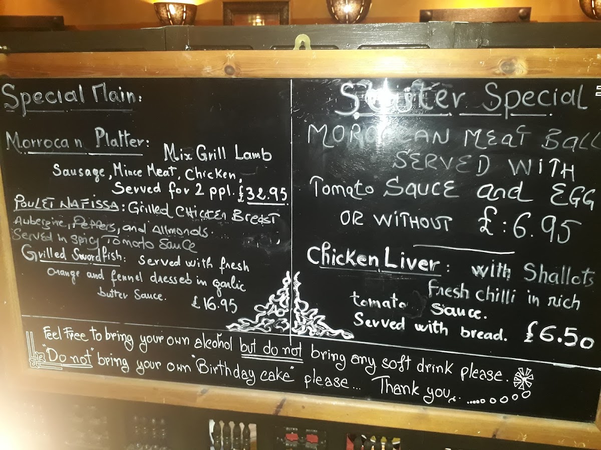 The highlight of the menu includes tantalizing dishes such as Tagine Mamounia and Poulet Nafisa, alongside exquisite seafood options like King Prawns, Halibut, and Mixed Fish. The culinary craftsmanship is evident in every bite, ensuring a memorable dining experience.